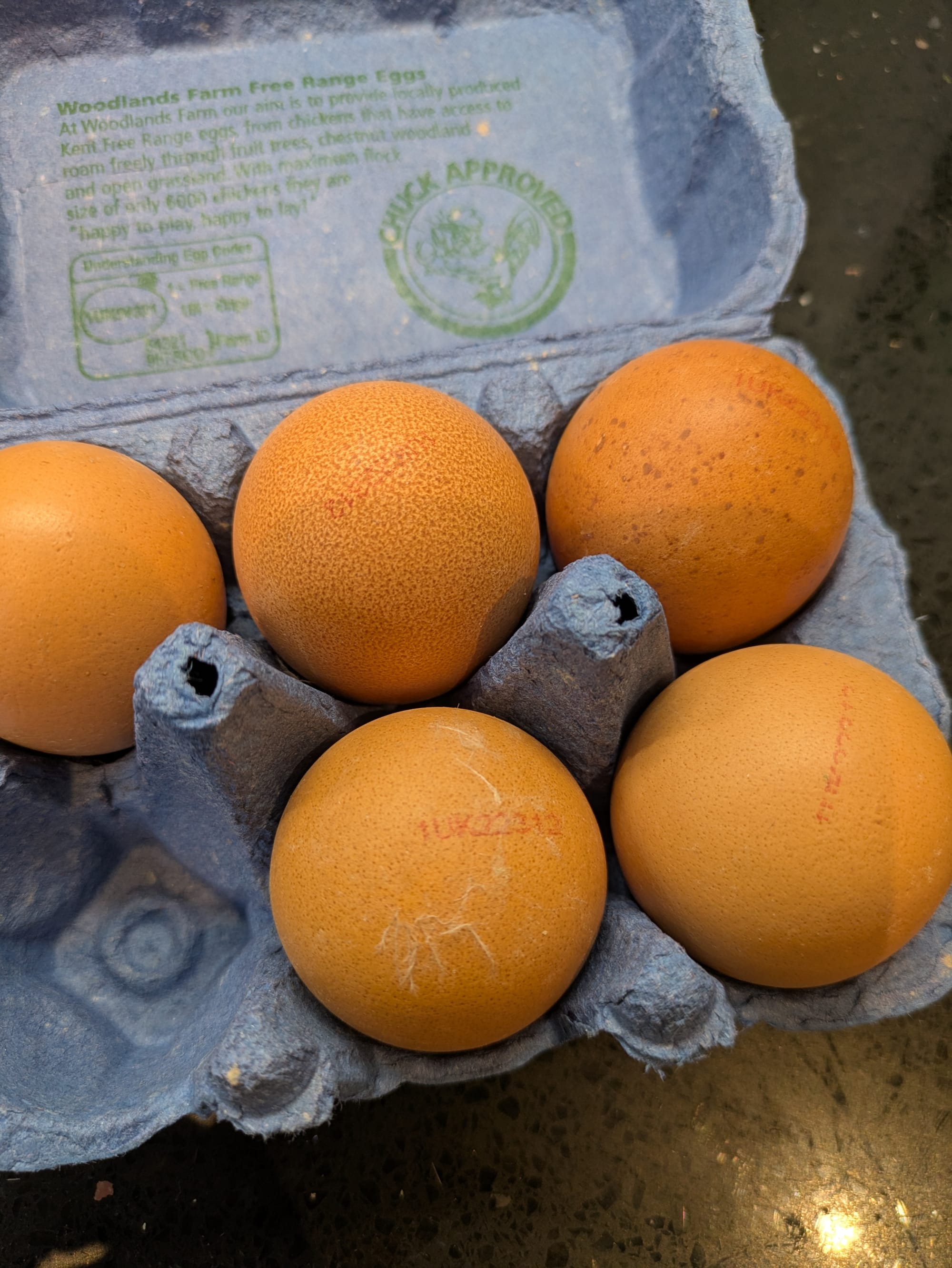 Oh, and expect to find feathers stuck to the eggs when you open the carton.